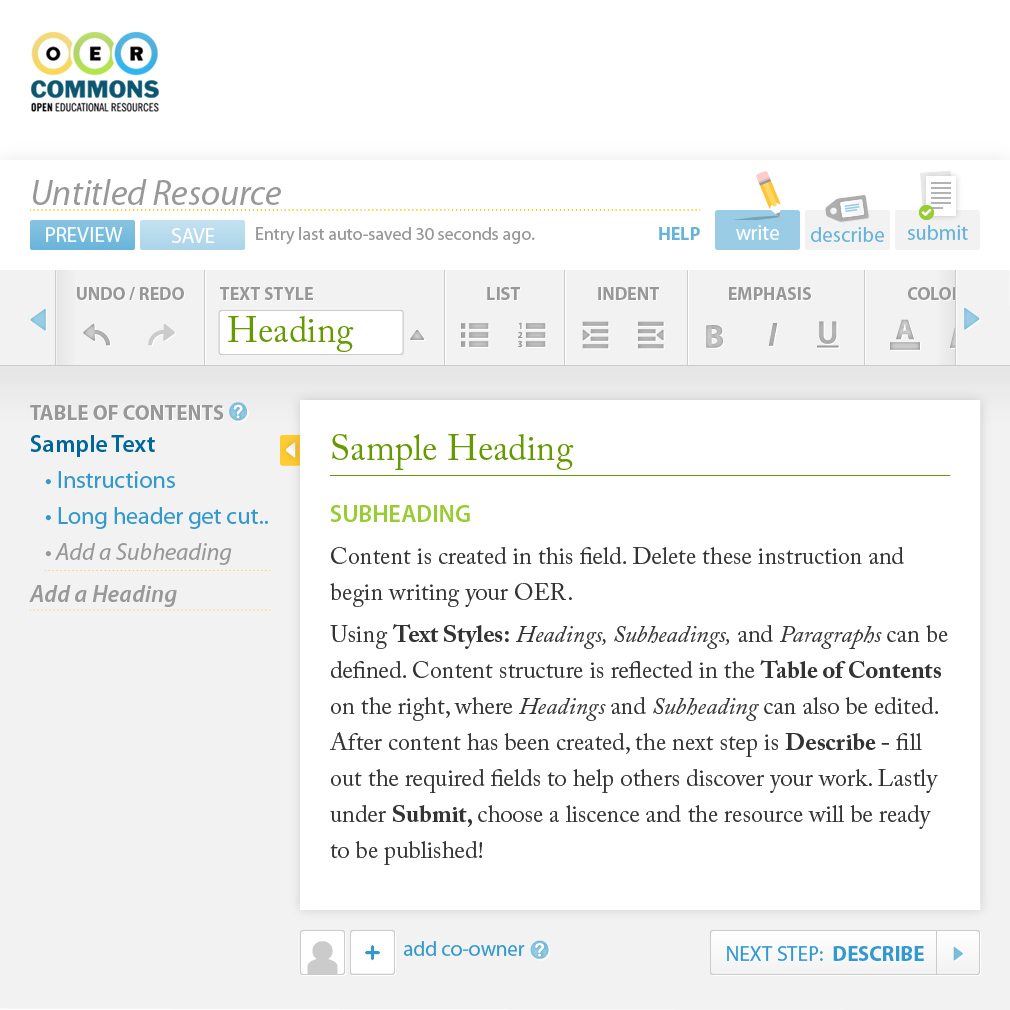 ISKME: More images of the OER Commons authoring environment are available at OER Commons authoring tool high fidelity mockups
