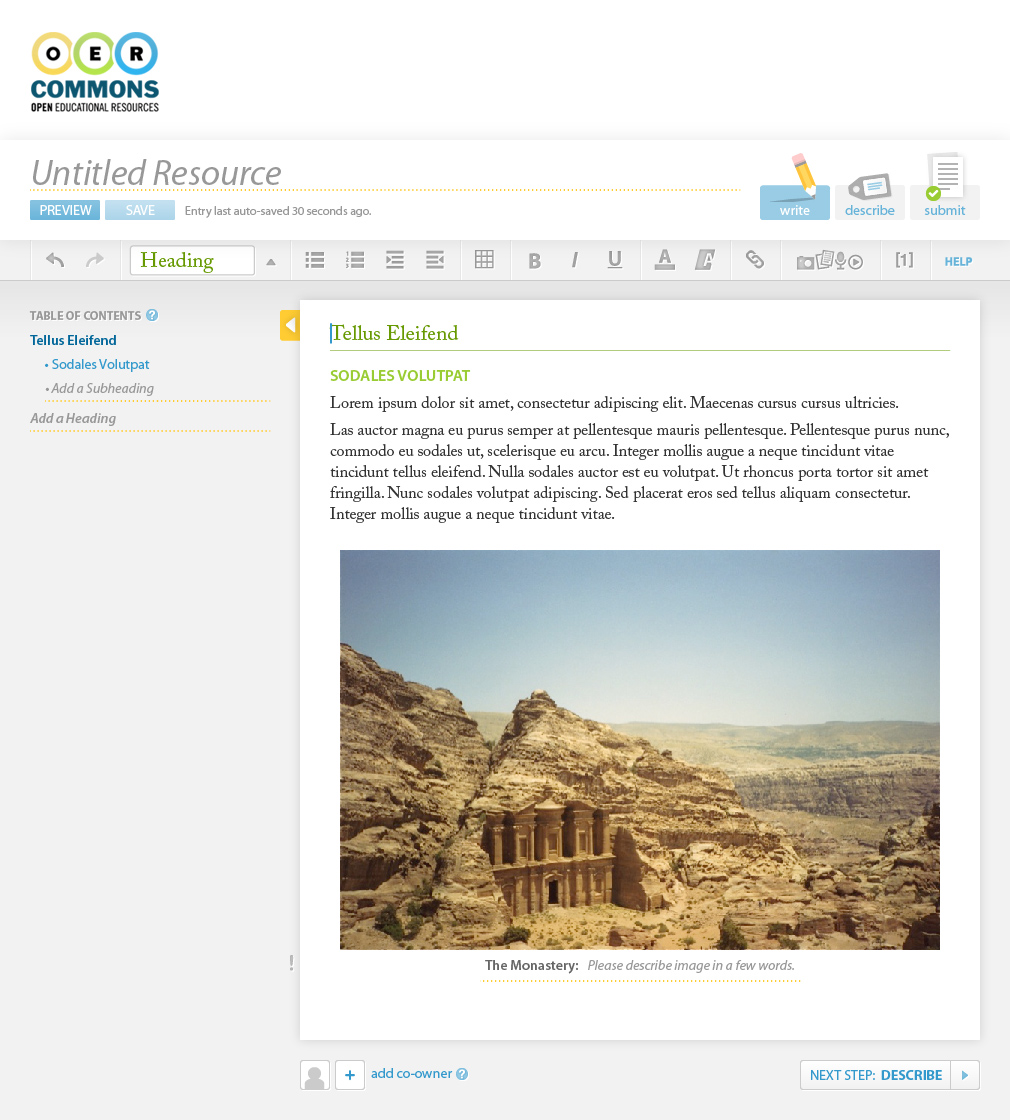 Figure 7: Floe/OER Commons authoring environment, image media inserted